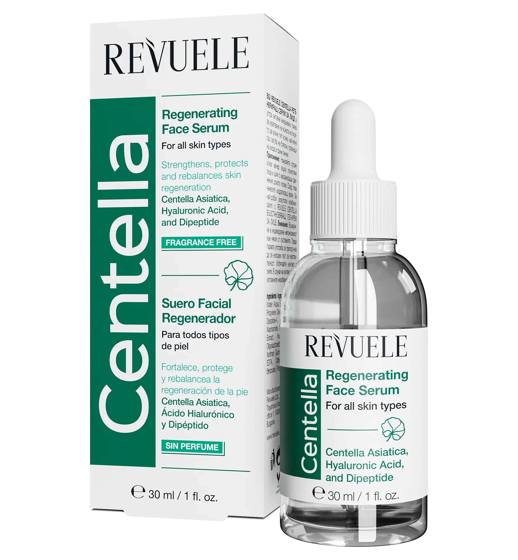 De Revuele Centella Regenerating Face Serum is geschikt voor alle huidtypes en zal de doffe huid, tekenen van vermoeidheid en fijne lijntjes verbeteren. Het serum is verrijkt met CICA en hyaluronzuur om de huid diep te hydrateren en de regeneratiefunctie te herstellen.