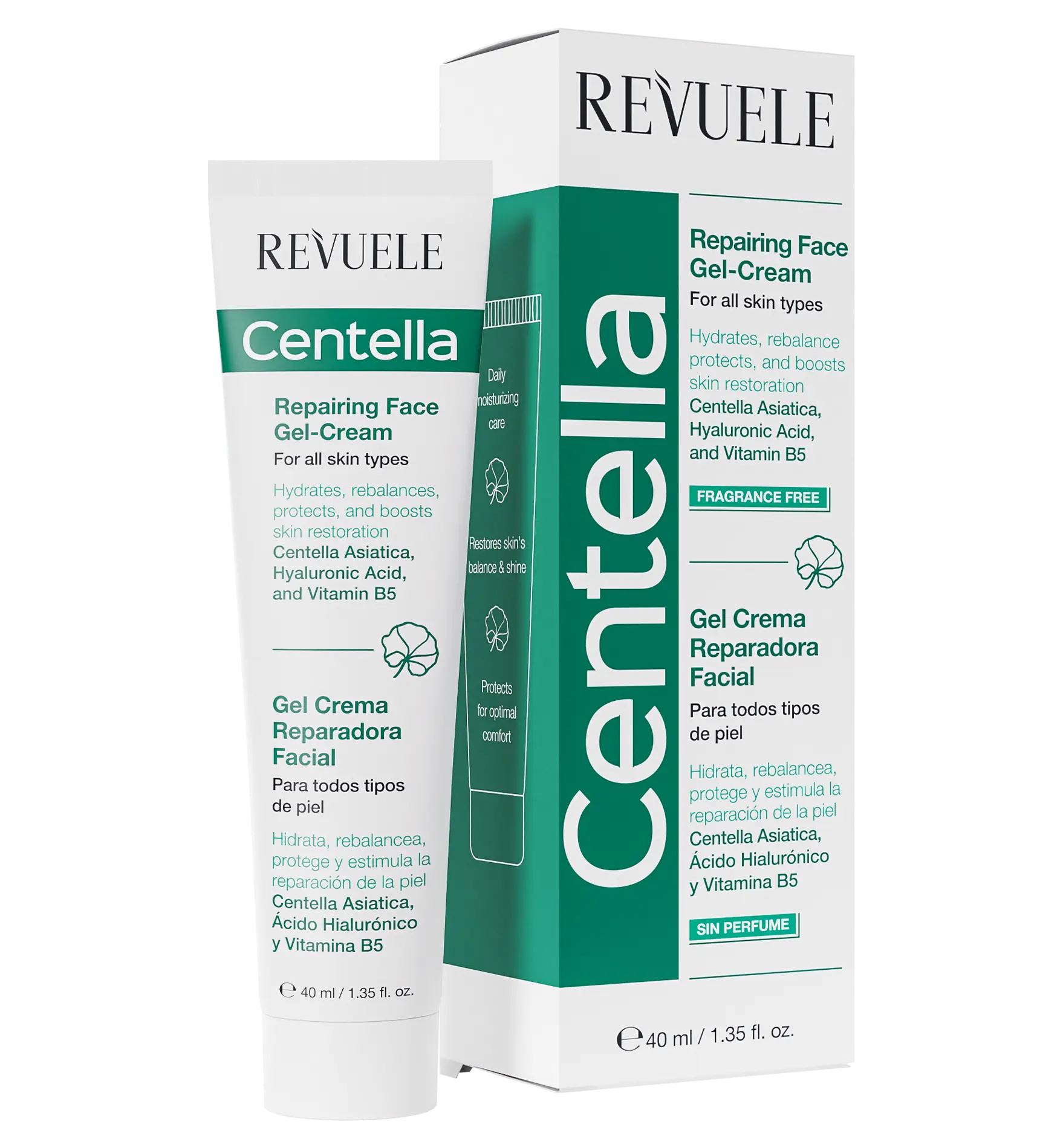 Met de Revuele Centella Repairing Face Gel Cream neem jij afscheid van fijne lijntes en een doffe huid! Deze formule bevat ingrediënten als CICA, hyaluronzuur en vitamine B5 die direct de huid zullen verzorgen en hydrateren.