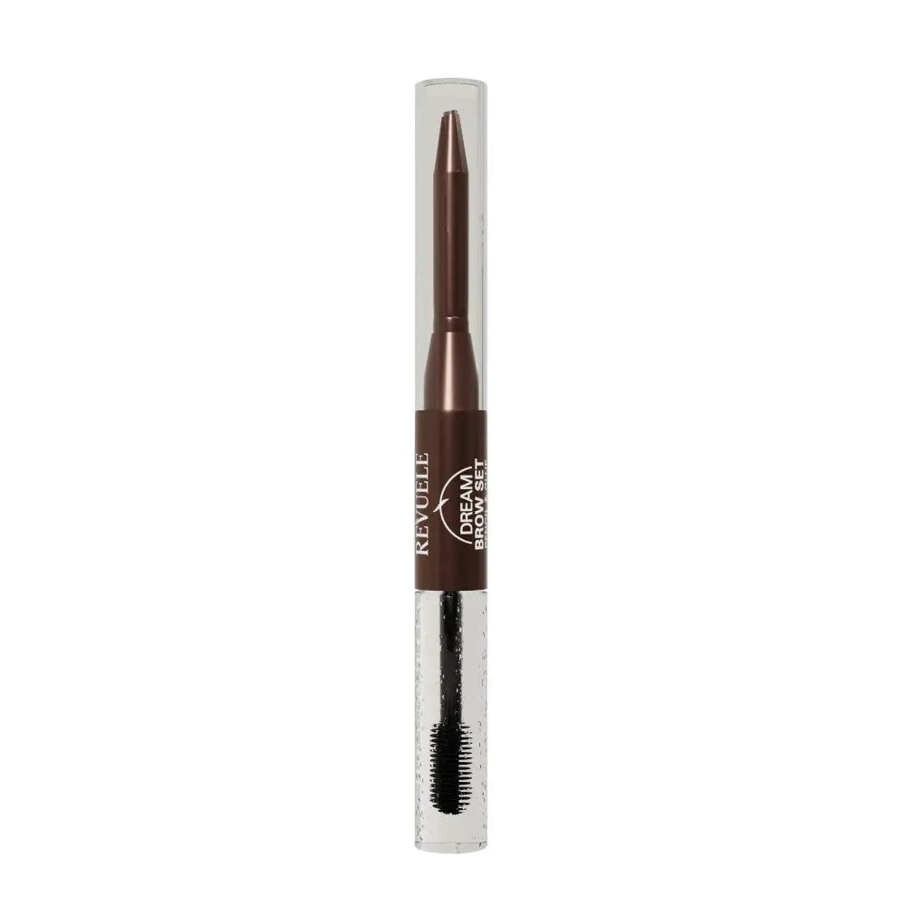 De Revuele Dream Brow Set Pencil & Glue is dé alles-in-één set voor perfecte wenkbrauwen in een handomdraai! Deze handige kit bevat een wenkbrauwpotlood met een driehoekige punt om je wenkbrauwen mee te omlijnen en op te vullen, én een ultra-sterke gel-to-glue formule om zelfs de meest eigenwijze haartjes te temmen. Of je nu strakke, gedefinieerde wenkbrauwen wilt of een fluffy look, met dit product breng je je brows helemaal in shape.