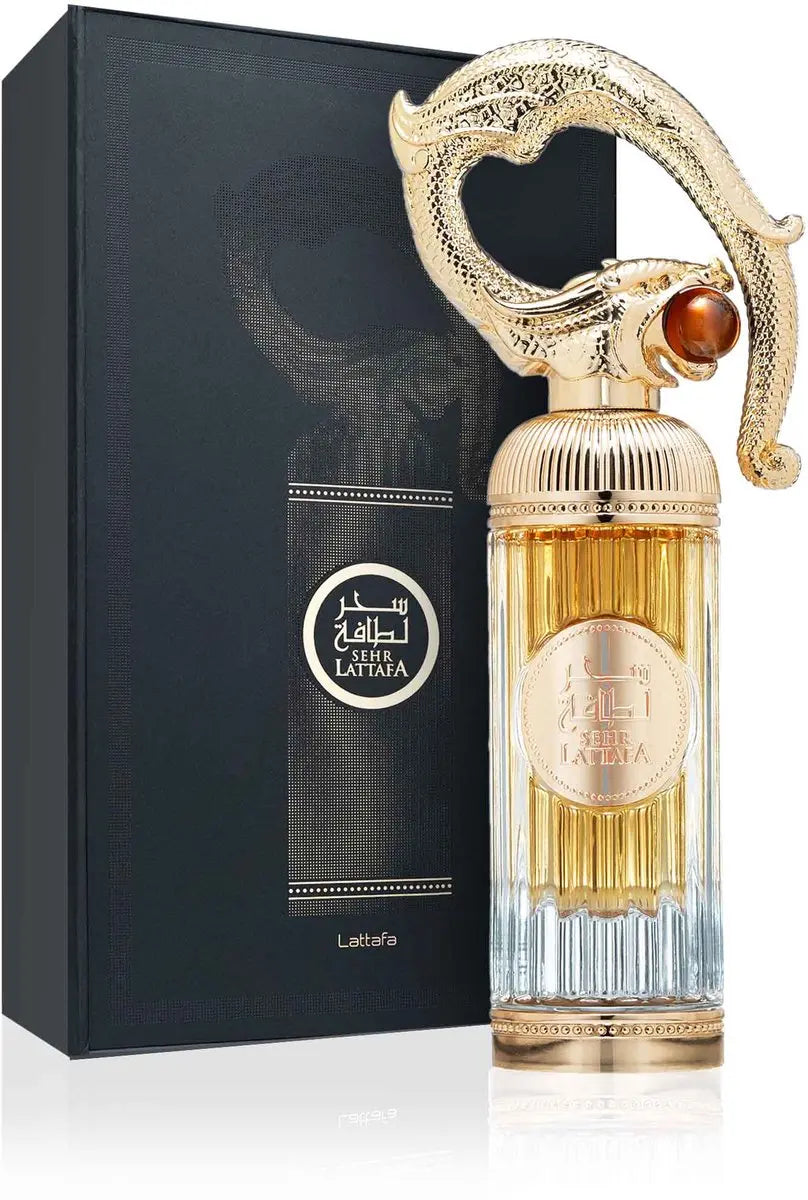 Lattafa Sehr Eau de Parfum is een uitnodigende, warme geur die elegantie en exotische charme combineert. De opening prikkelt de zintuigen met kruidige kaneel en de zachte bitterheid van amandel. In het hart ontvouwt zich een verfijnde mix van jasmijn, het fruitige aroma van Pomarose en de kruidige diepte van Akigalawood. De basis van romige vanille-absolue, amber en tonkaboon zorgt voor een luxueuze, langdurige finish.