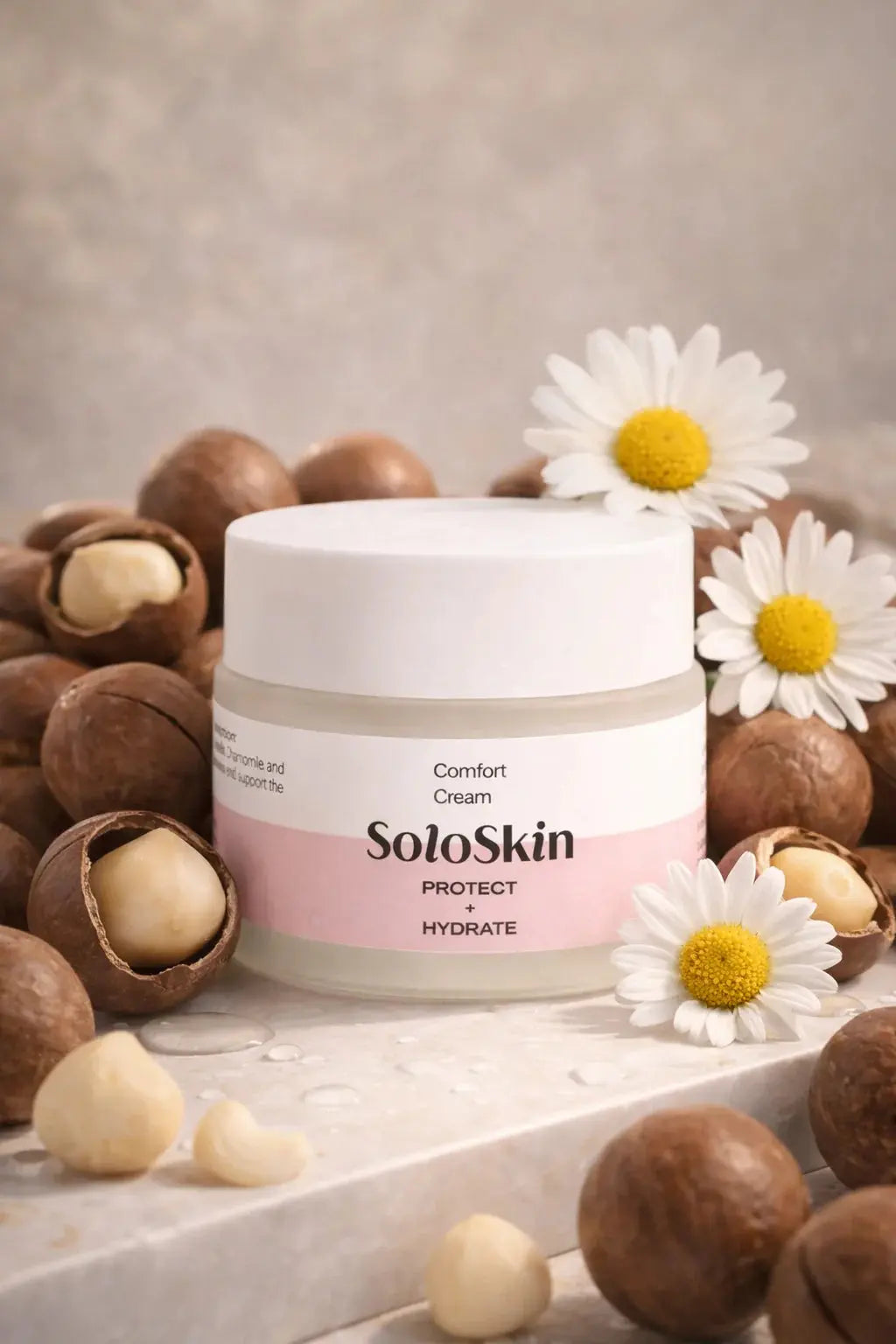 De Solo Skin London Comfort Cream is een intens voedende crème die speciaal is ontwikkeld om de droge, gevoelige en eczeem- of psoriasisgevoelige huid weer comfortabel en in balans te brengen. De rijke formule geeft je huid direct een zachte, kalmerende boost en helpt droogheid en trekkerigheid te verminderen.
