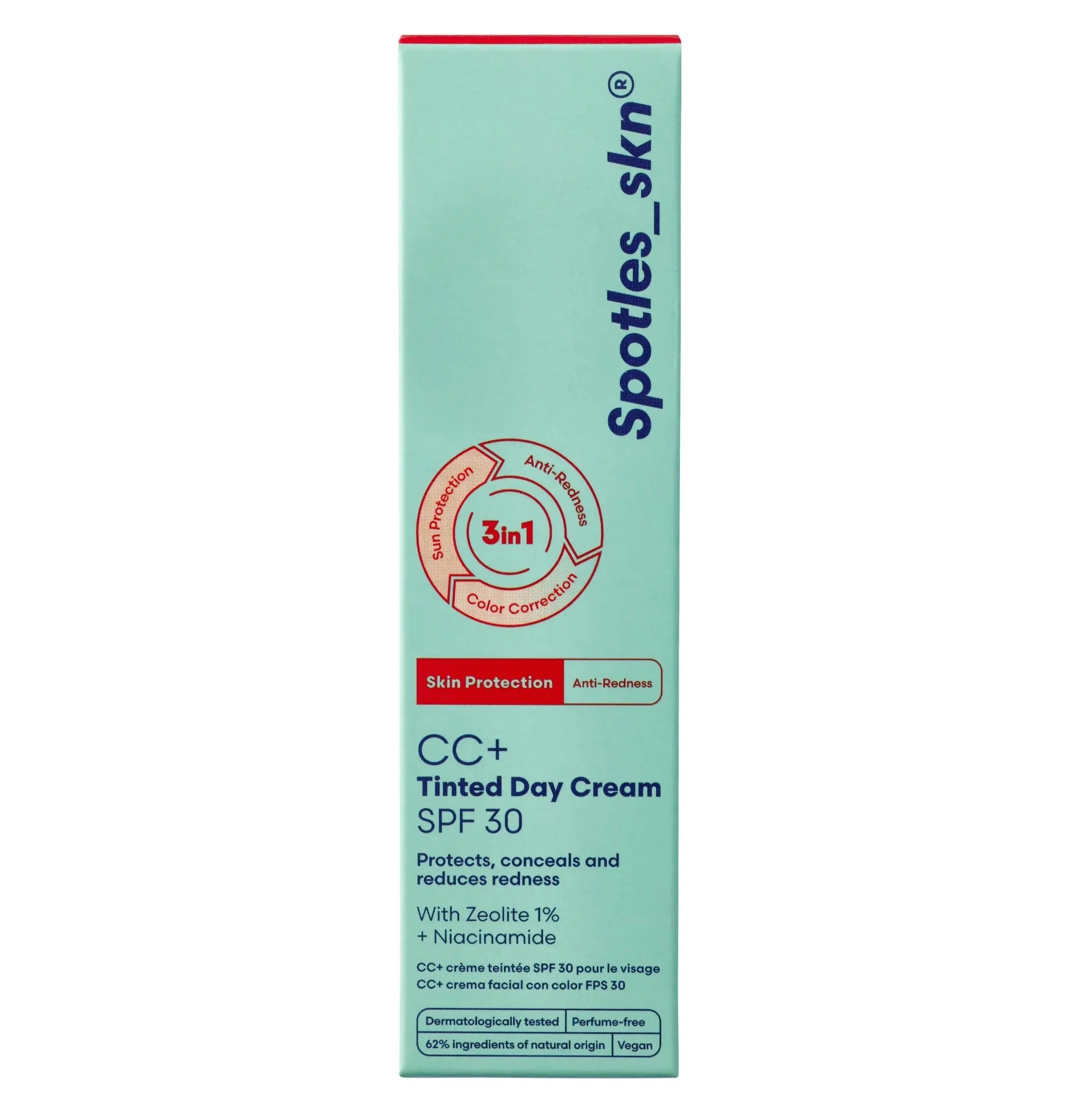 De Spotles Skn CC+ SPF 30 Cream is jouw all-in-one redder voor een egale, beschermde en frisse huid. Deze anti-redness tinted day cream combineert skincare, lichte dekking en zonbescherming in één stap: ideaal voor drukke ochtenden.