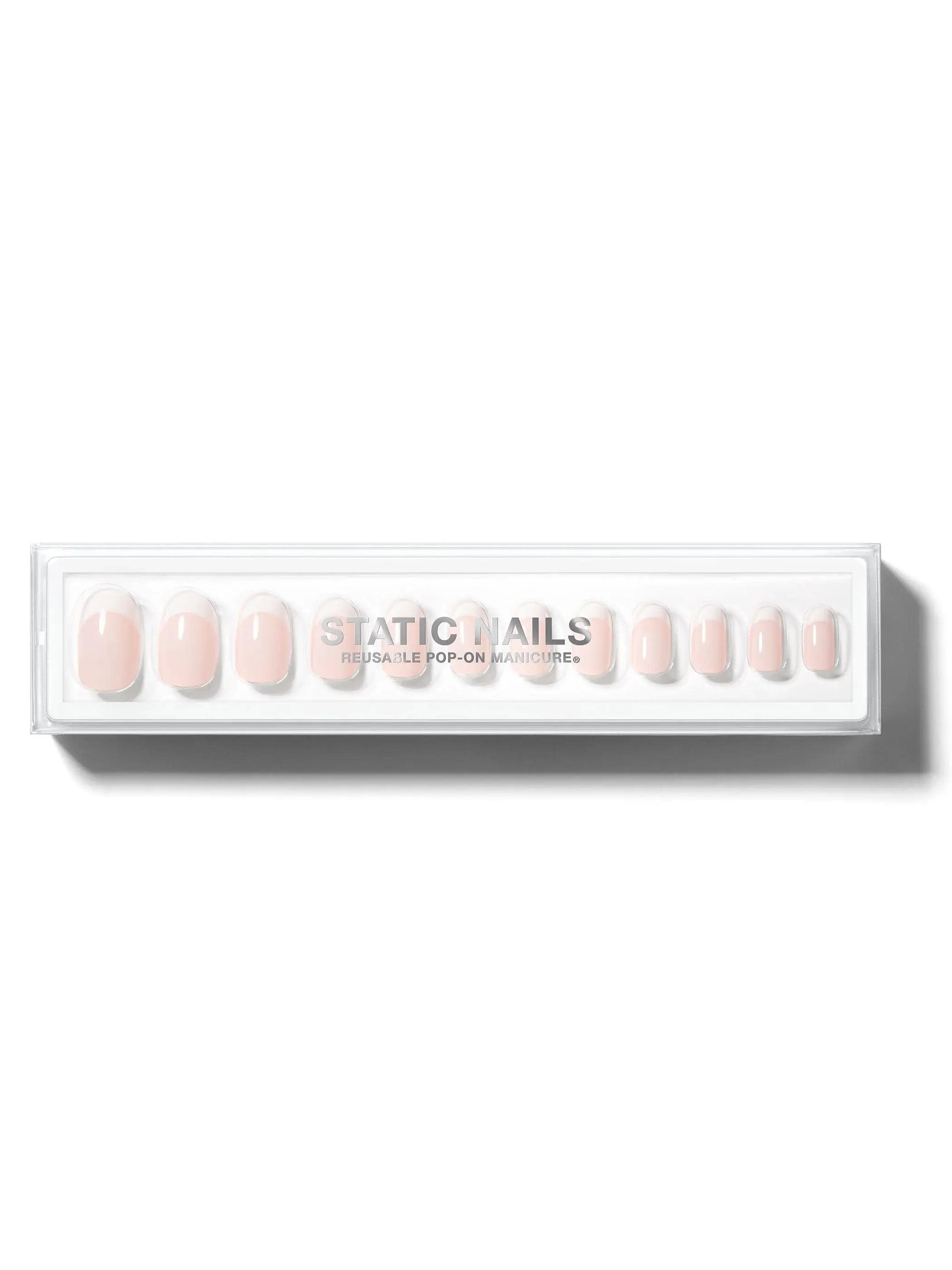 De Static Nails Reusable Pop-On Manicure French 75 Round combineert elegantie met innovatie voor een next-level manicure die jij gewoon zelf thuis aanbrengt. Deze like-acrylic pop-on nagels hebben een klassieke ronde vorm en een chique French manicure design, super stijlvol en draagbaar voor elke gelegenheid.