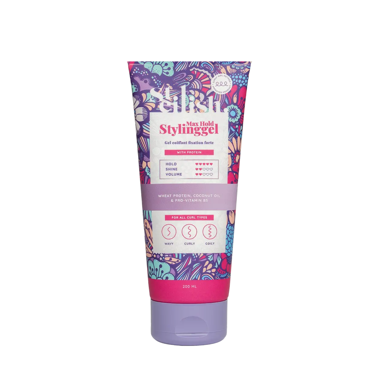 De Steilish Max Hold Stylinggel is jouw must-have als je gaat voor langdurige fixatie en intens gedefinieerde krullen. Deze krachtige gel is ontwikkeld om jouw stijl van 's ochtends vroeg tot laat in de avond perfect in model te houden, zonder dat je krullen hard of droog aanvoelen. De formule met tarweproteïne, panthenol en kokosolie voedt je haar terwijl het stevig blijft zitten, en helpt pluis onder controle te houden voor een gladde, strakke finish.