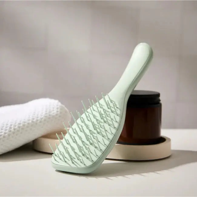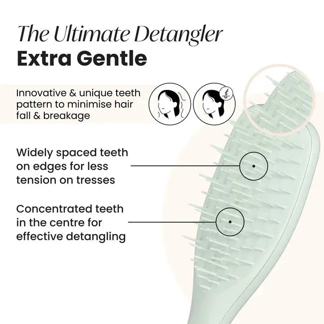 De Tangle Teezer Ultimate Detangler Extra Gentle Eucalyptus is dé borstel voor iedereen met fijn, breekbaar of gevoelig haar. Heb je last van haaruitval of durf je je haar amper nog te borstelen? Deze borstel is speciaal ontworpen om extreem zacht te zijn voor je lokken, zonder in te leveren op detangling power. Ideaal voor nat of droog haar, zonder trekken of breken!