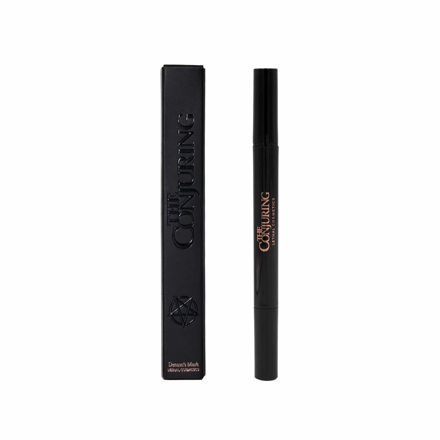 De Lethal Cosmetics The Conjuring Liquid Liner Demon’s Mark is geen gewone eyeliner het is een mystiek statement voor je ooglook. Deze double-ended eyeliner pen in een diepe, plum paarse tint combineert een ultra-precieze brush tip met een krachtige pentagram stamp aan de andere kant. Perfect voor iedereen die durft te spelen met dark glam en magische details.