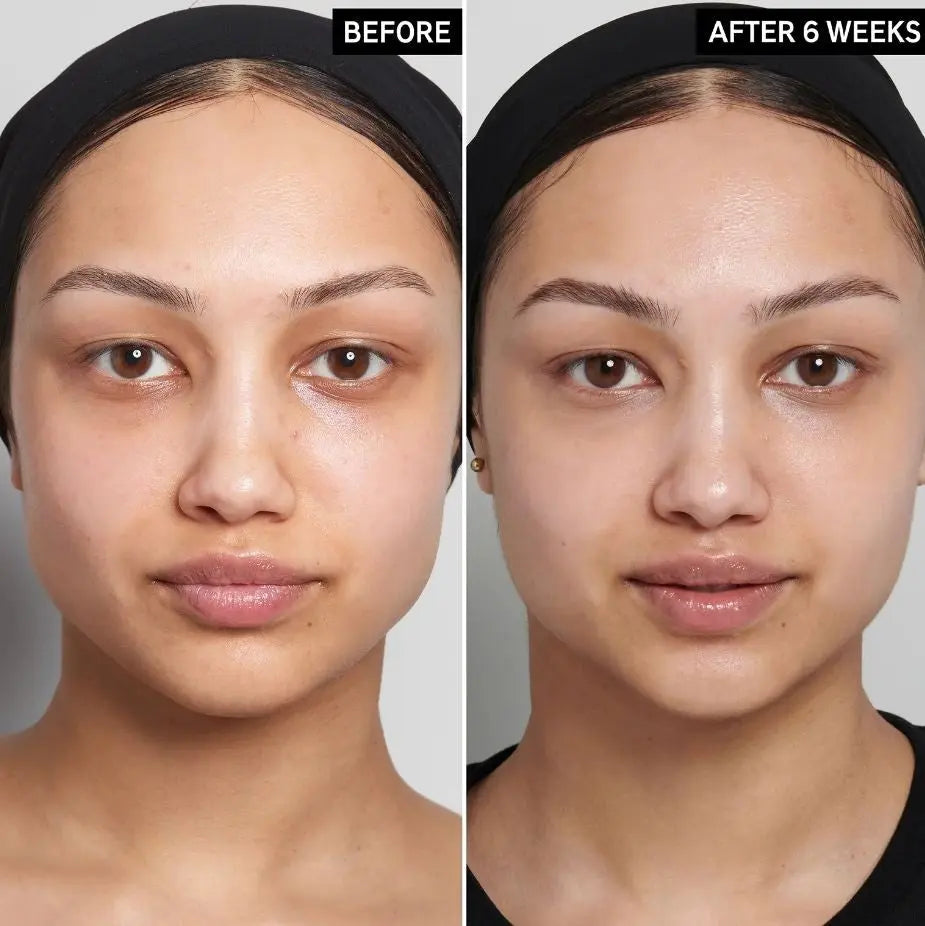 - Breng een kleine hoeveelheid aan op je vingertoppen en dep het serum voorzichtig op je huid onder je ogen.