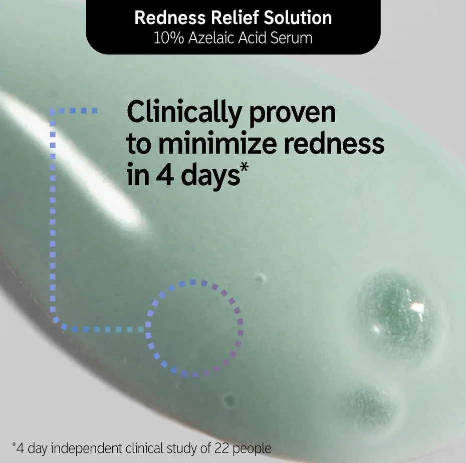 De formule zit boordevol ultrafijne groene deeltjes die roodheid helpen te camoufleren. De toevoeging van 10% Azelaic Acid en Allantoine 0,3% zorgt ervoor dat dit serum je huid kalmeert en verzacht met een egale teint als gevolg.