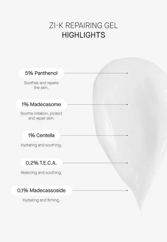 De Transparent Lab Zi-K Cica Repairing Gel is dé oplossing voor een gekalmeerde, herstelde en beschermde huid! Deze herstellende gel met CICA is speciaal geformuleerd om geïrriteerde of beschadigde huid te verzachten en te versterken. Dankzij een krachtige mix van hydraterende en herstellende ingrediënten ondersteunt deze gel het natuurlijke herstelproces en zorgt hij voor een gezonde, frisse uitstraling.