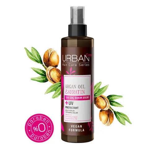 De Urban Care Argan Oil & Keratin Leave In Conditioner Spray(2phase) is ideaal voor breekbaar en beschadigd haar. Deze tweefasige leave-in conditioner is speciaal ontwikkeld om lang, dof en snel brekend haar een gladdere en glanzendere uitstraling te geven.