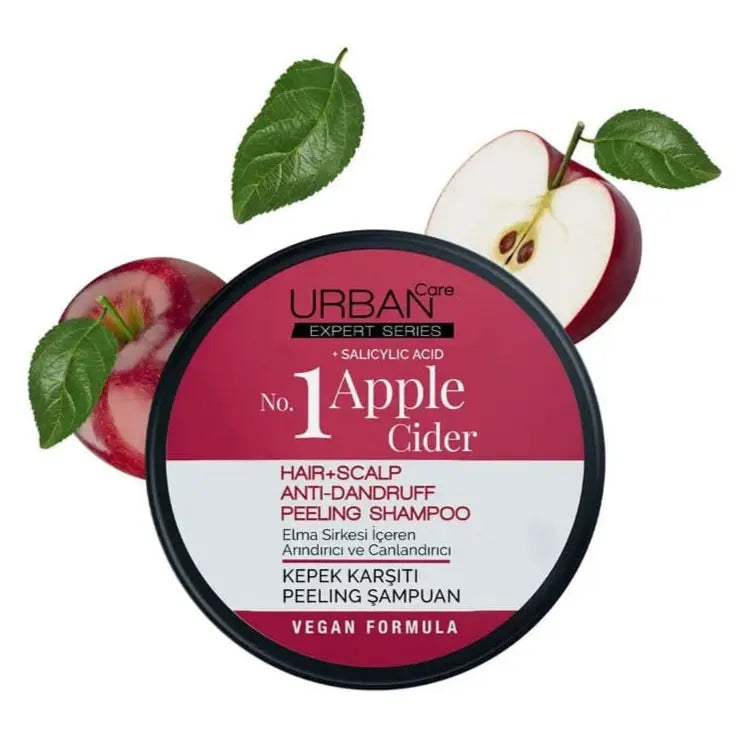 De Urban Care No:1 Apple Cider Peeling Shampoo is een krachtige, exfoliërende anti-roos behandeling die je hoofdhuid diep reinigt en herstelt. Deze unieke peeling shampoo is verrijkt met appelazijn, salicylzuur en natuurlijke zeekristallen om roos, schilfers en vetophopingen effectief aan te pakken, ideaal bij een onrustige of gevoelige hoofdhuid.
