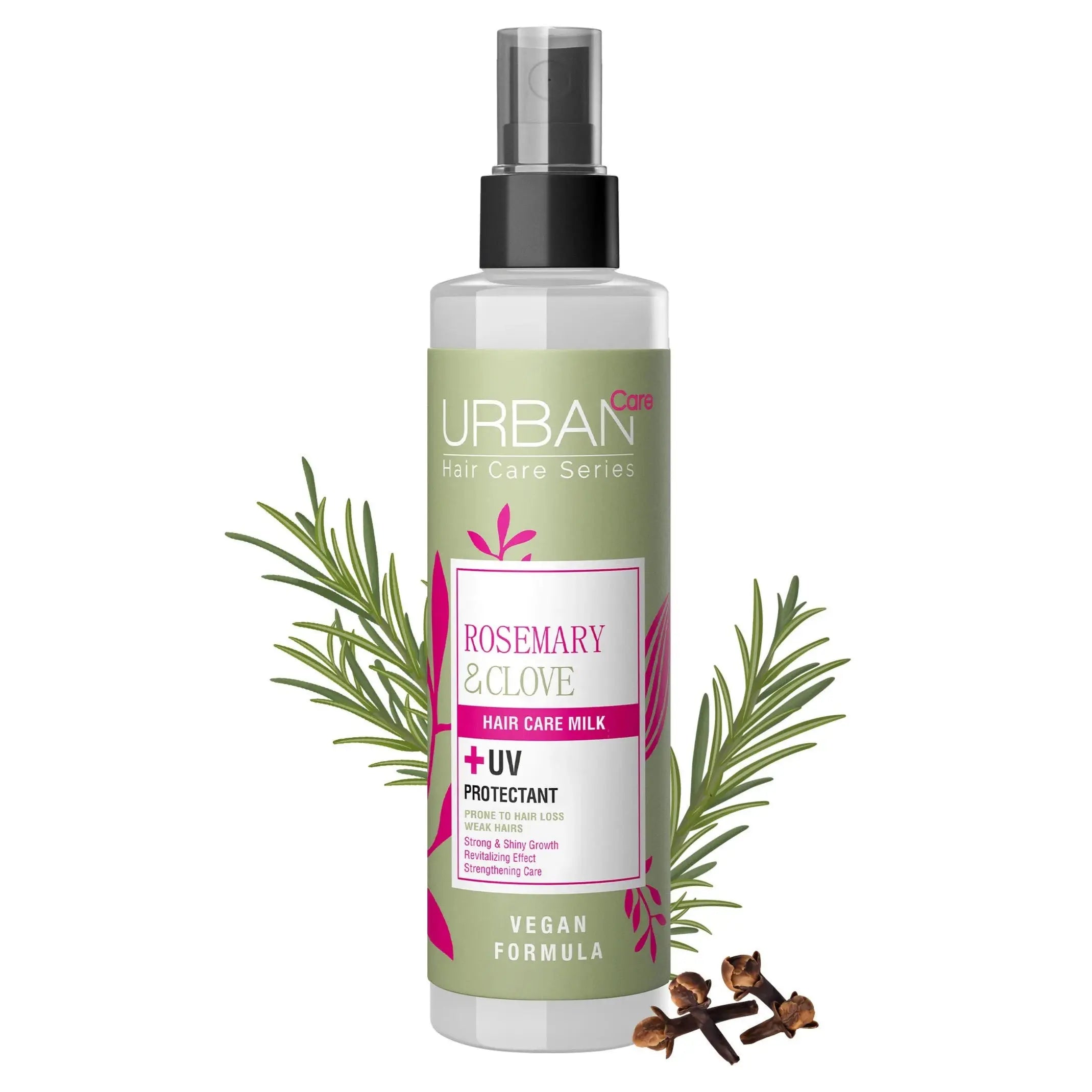 De Urban Care Rosemary & Clove Strengthening Hair Treatment Milk is jouw dagelijkse multitasker voor sterker, zachter én glanzender haar. Deze lichte haarmilk is verrijkt met natuurlijke extracten van rozemarijn en kruidnagel en zorgt voor intense hydratatie, versterking van het haar én bescherming tegen hitte en zon dankzij de toegevoegde UV-filter.
