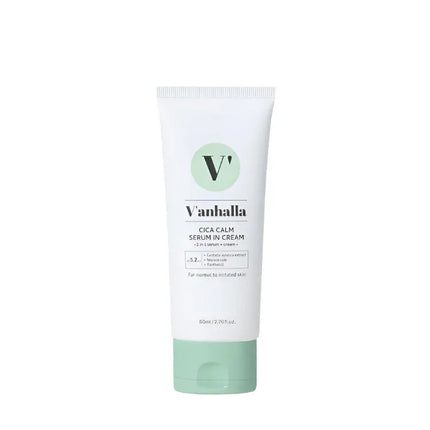 De V'anhalla Cica Calm Serum In Cream is de perfecte combinatie van serum en crème in één zachte, kalmerende formule. Deze mild zure crème is verrijkt met versterkt centella asiatica-extract en helpt de natuurlijke pH-balans van je huid te behouden. Ideaal voor iedereen die op zoek is naar langdurige hydratatie en rust, zonder dat de huid wordt overbelast.
