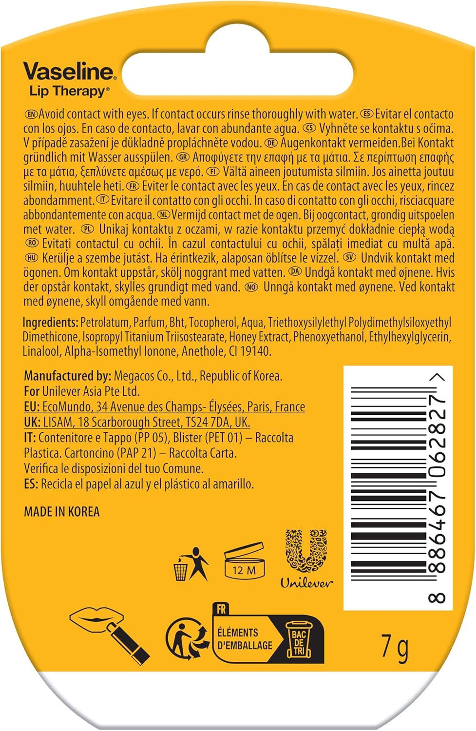 Petrolatum, Parfum, Bht, Tocopherol, Aqua, Trihexyphenylsiloxysilicate, Dimethicone, Isopropyl Titanium Triisostearate, Honey Extract, Phenoxyethanol, Ethylhexylglycerin, Linalool, Alpha-isomethyl Ionone, Anethole, Ci 19140
