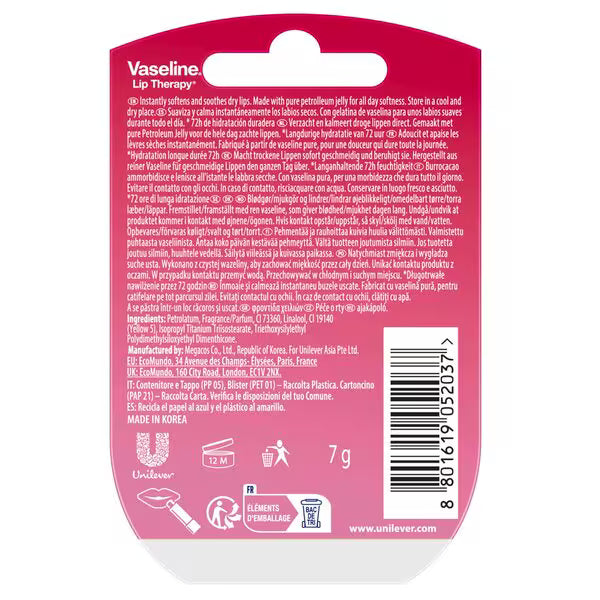 De Vaseline Lip Therapy Mini Rosy is jouw go-to lippenbalsem voor zachte, verzorgde lippen, altijd en overal. Dankzij het handige mini-formaat past ‘ie perfect in je tas of broekzak, zodat je lippen de hele dag door beschermd en gehydrateerd blijven. Deze klassieker is verrijkt met Vaseline Jelly, een bewezen ingrediënt dat helpt om droge lippen te verzachten en vocht vast te houden.