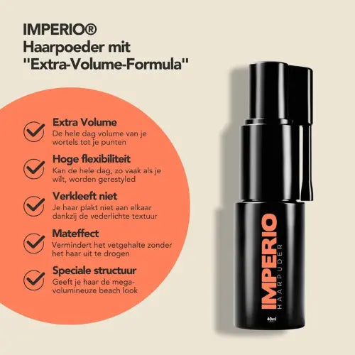 Dit haarpoeder is niet alleen een stylingproduct, maar ook een must-have, vooral voor licht of dun haar. Transformeer je haar met dit poeder en creëer moeiteloos trendy kapsels. Imperio Volume Poeder, voor een look die indruk maakt!