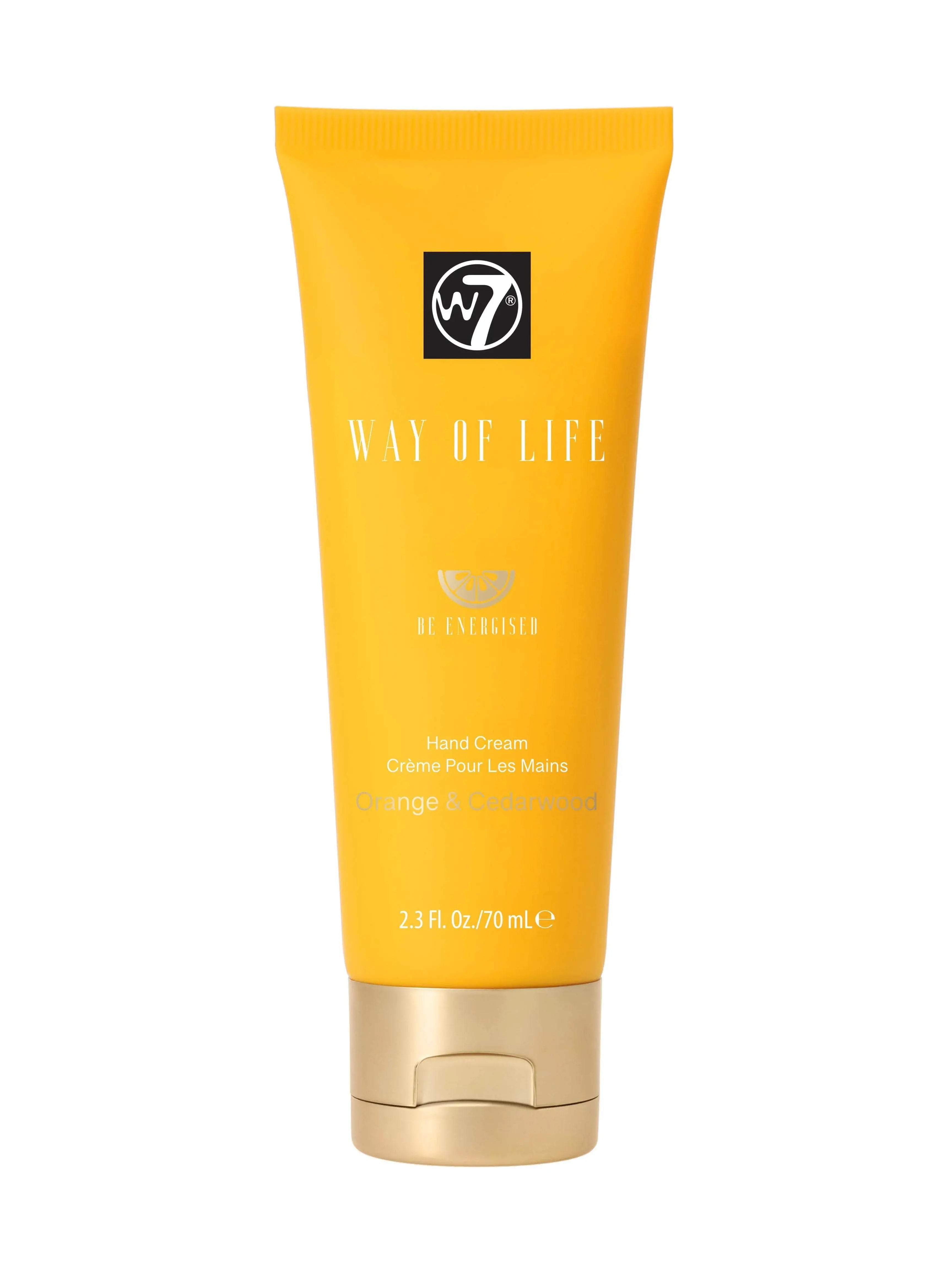 De W7 Way of Life Hand Cream Orange & Cedar is een luxe handcrème die je huid verwent met een verkwikkende geur van sinaasappel en cederhout.