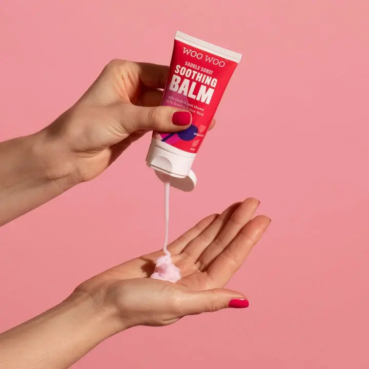 De WooWoo Saddle Sore! Soothing Balm wordt jouw handbag musthave deze zomer! Deze balsem beschermd je huid tegen schuren en helpt om bestaande schuurplekken te verzachten en te genezen. De formule bevat natuurlijke ingrediënten en kalmeert en verlicht de geïrriteerde huid met kamille, rozenbottelolie en aloe vera.