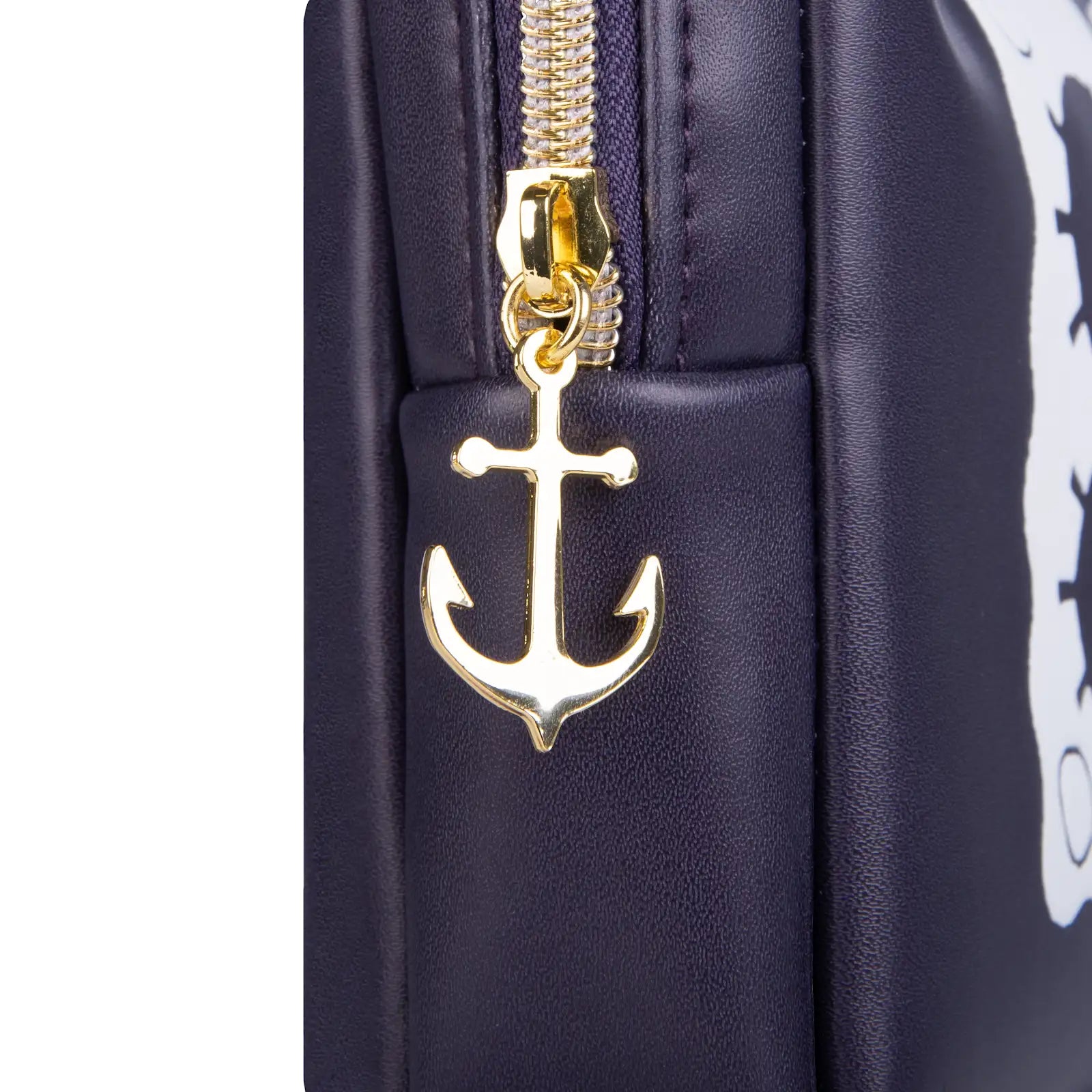 De binnenkant is gevoerd met luxe satijn en een SpongeBob-geïnspireerde print die je elke keer laat glimlachen. De anchor-vormige zipper pendant maakt het helemaal af. Perfect voor het opbergen van je favoriete producten, on-the-go touch-ups of gewoon als eyecatcher in je stash.