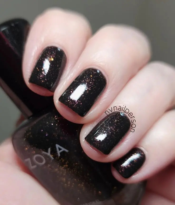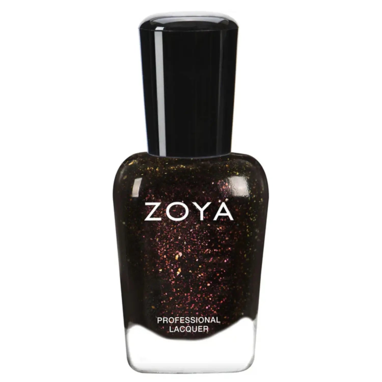De Zoya Nail Polish Lilith is een absolute showstopper die elegantie en edge perfect in balans brengt. Deze draagbare zwarte tint is allesbehalve basic: rose gouden flakes en subtiele roze micro-glitters zorgen voor een gelaagd, multidimensionaal effect dat je nagels laat opvallen: zonder te overdrijven.